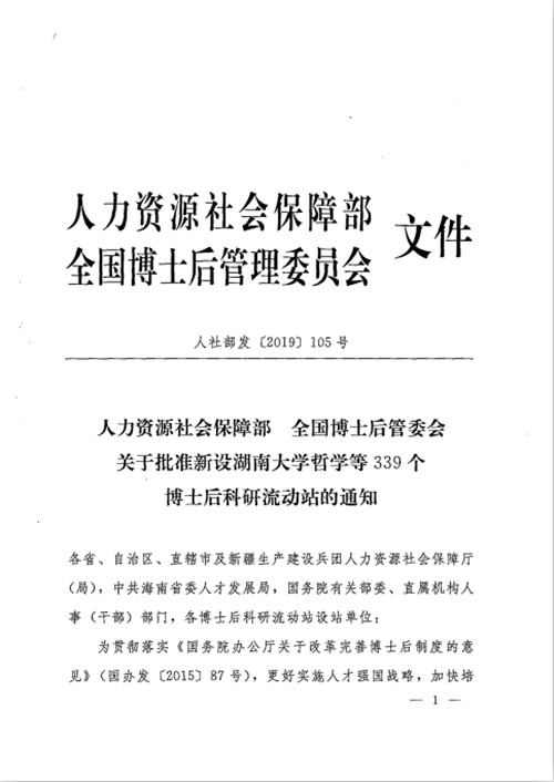 日前,人力资源和社会保障部、全国博士后管理委员会日前发布了《关于批准新设湖南大学哲学等339个博士后科研流动站的通知》(人社部发〔2019〕105号),批准新设PA视讯平台工商管理一级学科博士后科研流动站。本次申报工作启动以来,学院领导高度重视,各系各办积极参与,认真准备申报材料,群策群力,最终成功申报博士后科研流动站。