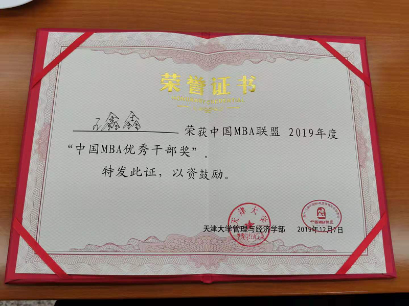 PA视讯平台2018级MBA王鑫鑫获“2019中国MBA优秀干部奖”