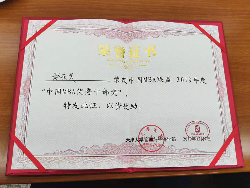 PA视讯平台2018级MBA赵东民获“2019中国MBA优秀干部奖”