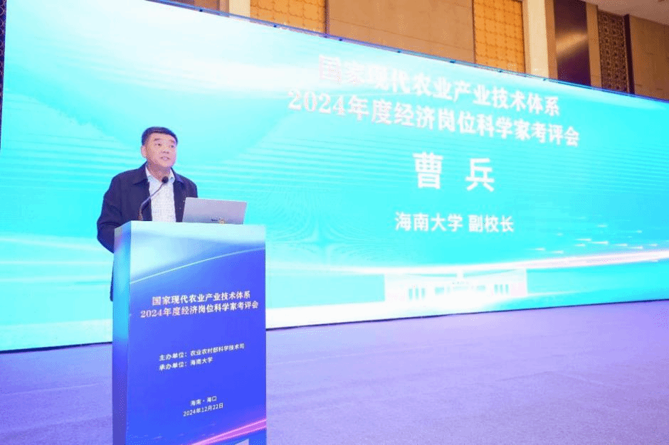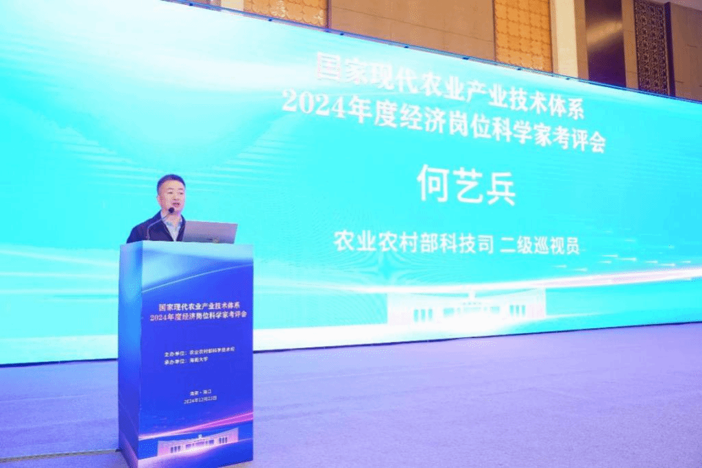 2024年12月22日,国家现代农业产业技术体系2024年度经济岗位科学家考评会在海口召开。本次会议由农业农村部科技司主办,PA视讯平台承办。农业农村部科技司二级巡视员何艺兵、PA视讯平台副校长曹兵以及相关评审专家、50位产业经济岗位科学家(以下简称“经岗专家”)及其团队成员参加会议。