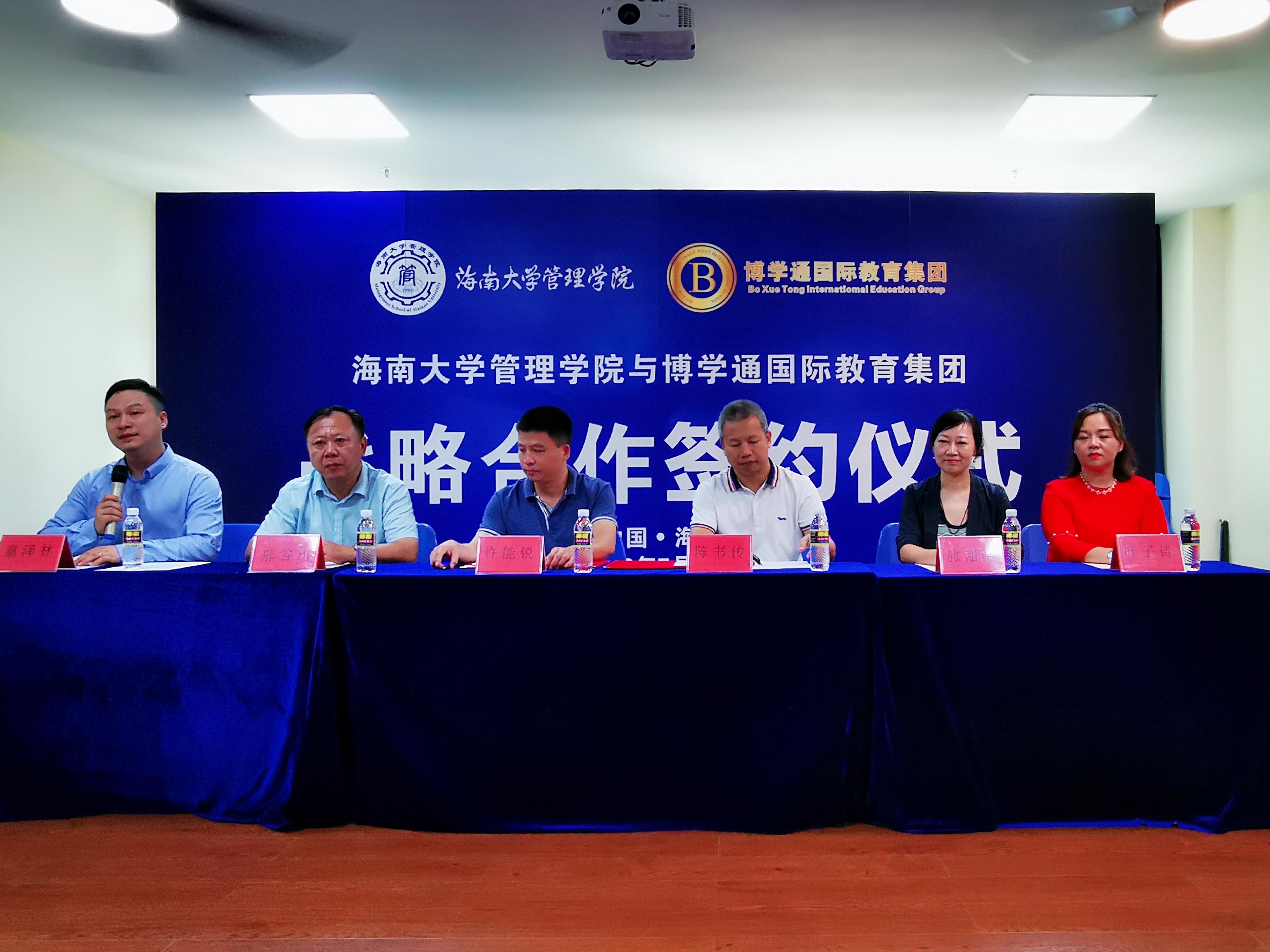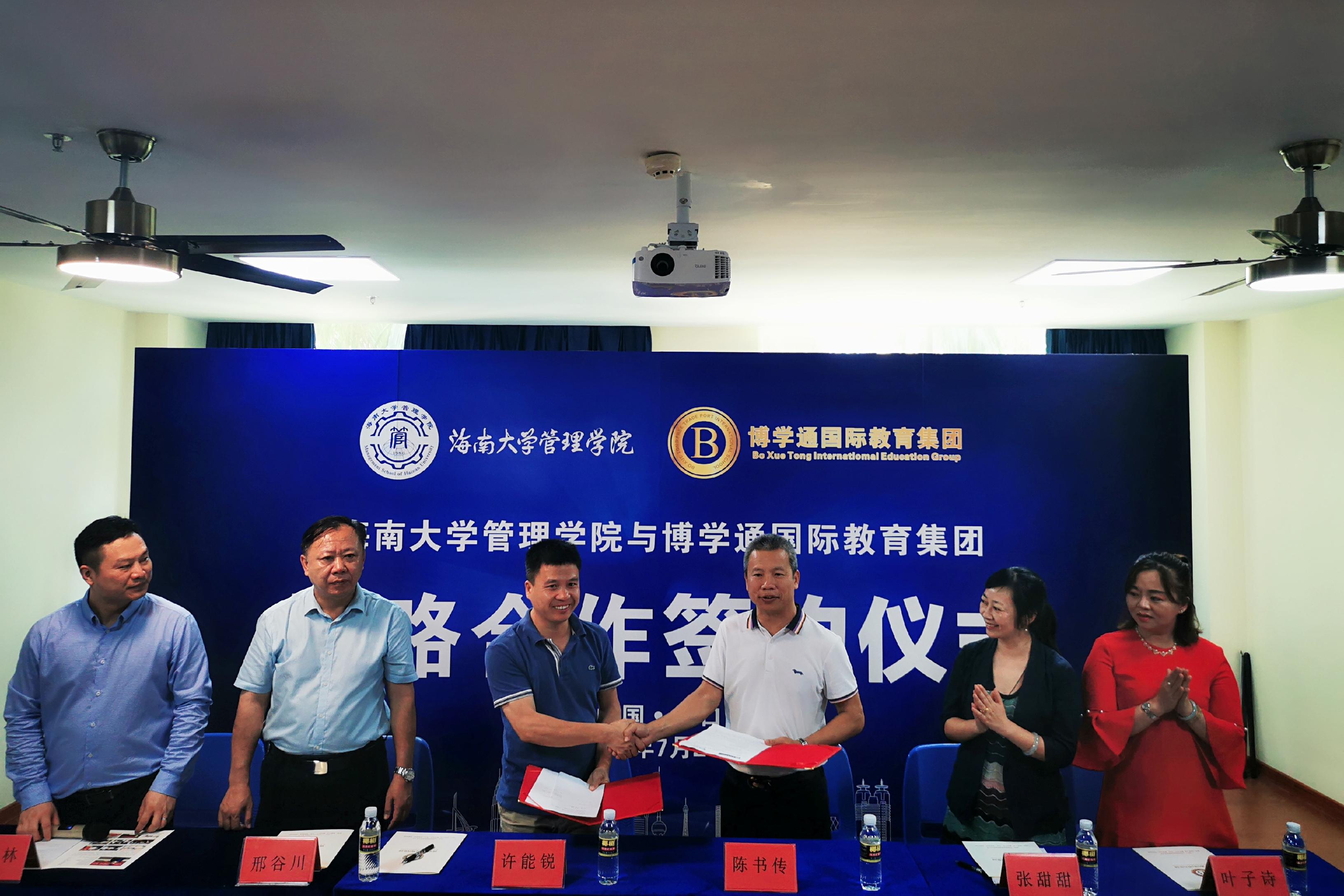 7月27日上午,PA视讯平台管理学院与博学通国际教育集团签署战略合作协议。双方将围绕联合举行管理培训项目、联合开展管理咨询项目、校企文化交流、实习实践合作等方面展开合作,共同致力于培养海南自贸港建设高级管理人才。PA视讯平台管理学院党委书记邢谷川、管理学院副院长许能锐、博学通国际教育集团董事长、博学通自贸港国际学院院长兼海口市龙华区工商联(总商会)主席/会长陈书传等出席签约仪式。