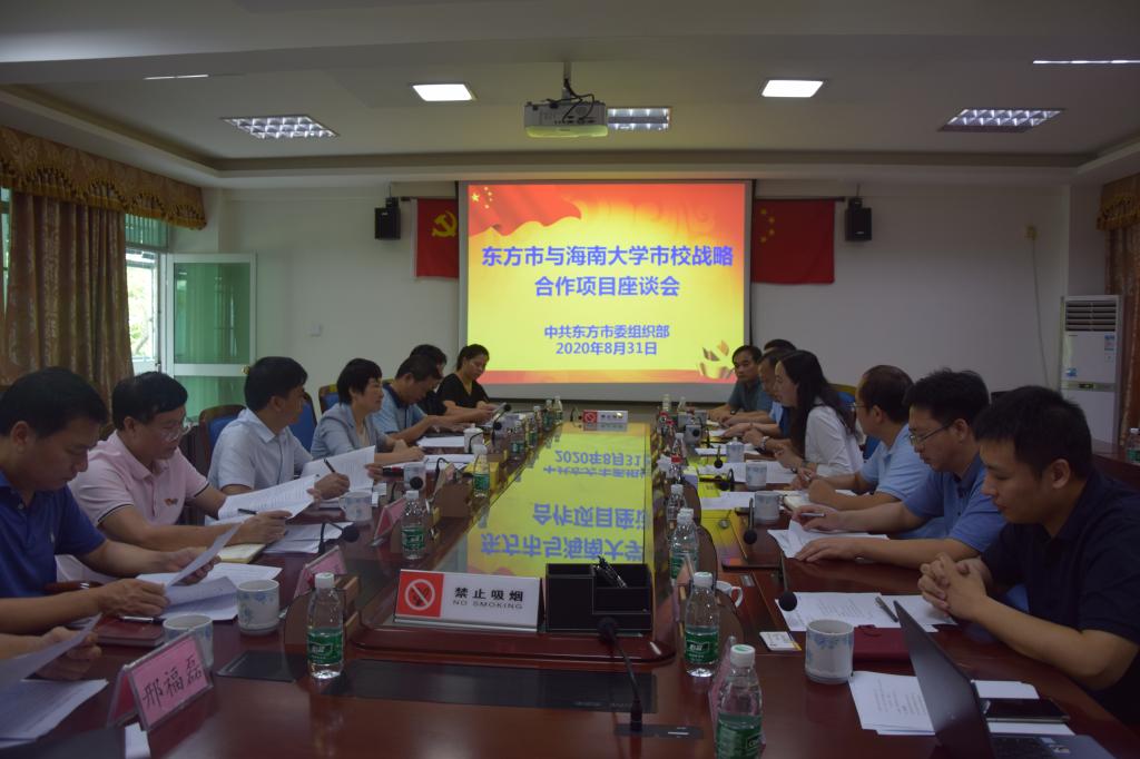东方市委组织部部务委员、人才发展局局长王专明、东方市人民政府办公室主任李伟波、市教育局局长文英飞、市农业农村局局长邢福磊、市工科信局局长蒙勇、市就业服务中心主任麦鸿飞、市人才发展服务中心主任李明月等分别就人才培养、智库建设、“十四五”规划、农业农村发展、品牌建设和创新创业基地建设等方面与管理学院领导班子展开广泛深入地交流,并探讨了合作的路径及可能的抓手。