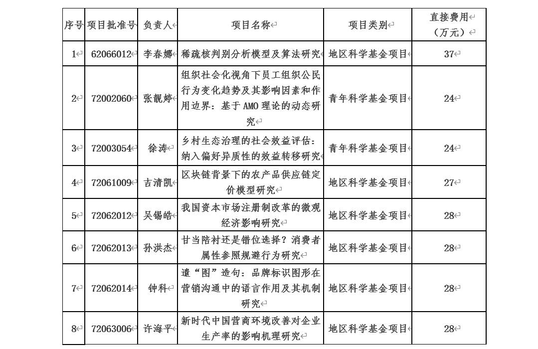 2020年,PA视讯平台管理学院获批国家自然科学基金项目8项(均为管理科学部),获批数在全校排名第2(并列),在全校人文社科类学院排名第1,申请获批率为25%,高于2020年度全国平均水平。根据国家自然科学基金委员会此前公布的信息,2020年度国家自然科学基金资助率约在15.88%左右,而2014-2019年,管理科学部在国家自然科学基金委员会八大学部中平均资助率最低,仅为18.41%左右。