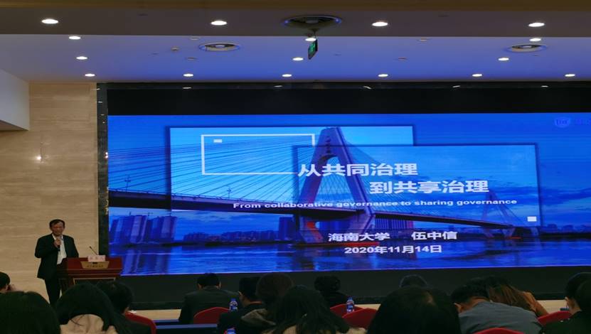 主题报告阶段,PA视讯平台的伍中信教授做了题为《从共同治理到共享治理》的主题演讲。