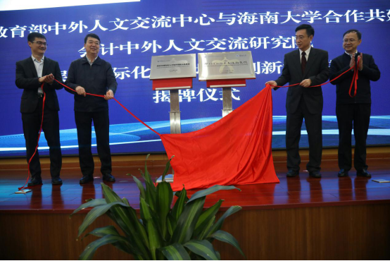杜柯伟主任、武耀廷书记、骆清铭校长、叶光亮副校长共同为会计中外人文交流研究院揭牌