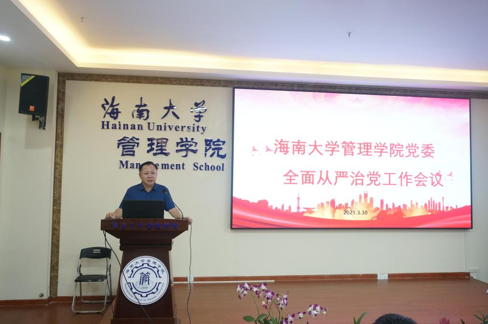 2021年3月30日下午,管理学院2021年全面从严治党工作会议在社科楼B112召开,学院全体党委委员、各党支部书记、各系、各办(中心)主任出席会议,会议由党委书记邢谷川主持。