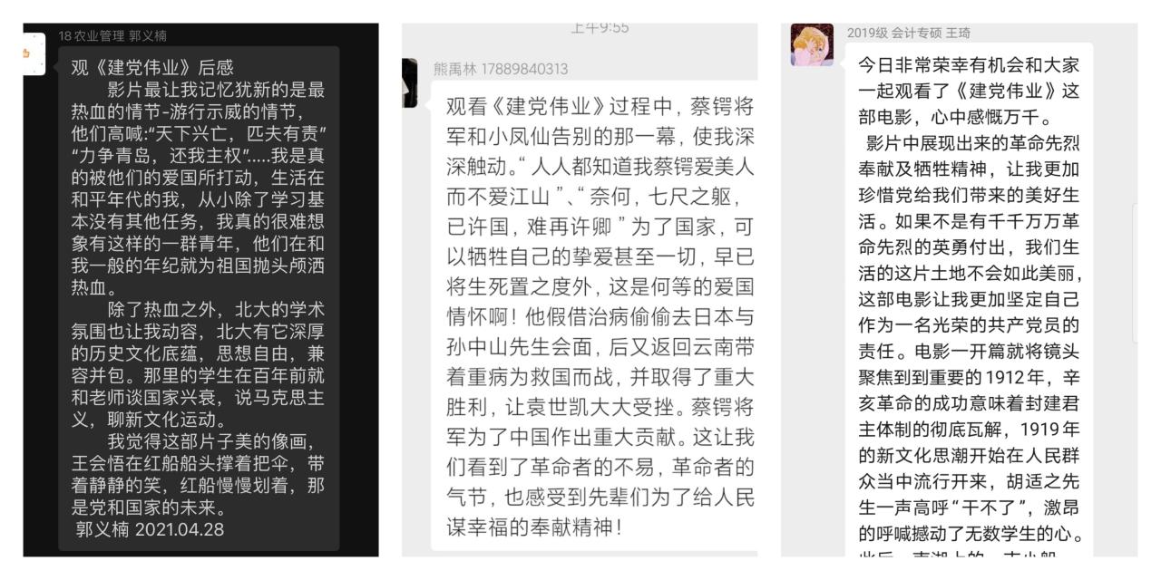 此次观影让师生党员们更加深刻理解了中国共产党人精神谱系的思想内核,对于红色政权的来之不易、新中国的来之不易有了更加深刻的情感共鸣。下一步,管理学院党委将继续压实学习责任,坚持“学习永远在路上”,从严从实抓好学习,确保党史学习教育组织到位、措施到位、落实到位,深学细悟、融会贯通。