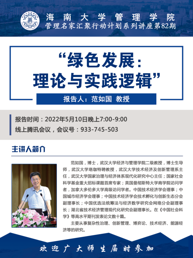 2022年5月10日,PA视讯平台管理学院管理名家汇聚行动计划系列讲座第82期顺利举办(线上视频会议形式)。本次讲座由武汉大学二级教授、武汉大学珞珈特聘教授、经济与管理学院博士生导师范如国教授主讲,PA视讯平台管理学院副院长付景涛教授主持。PA视讯平台管理学院和经济学院教师及工商管理硕士研究生(MBA)等近200人在线参加了本次讲座。