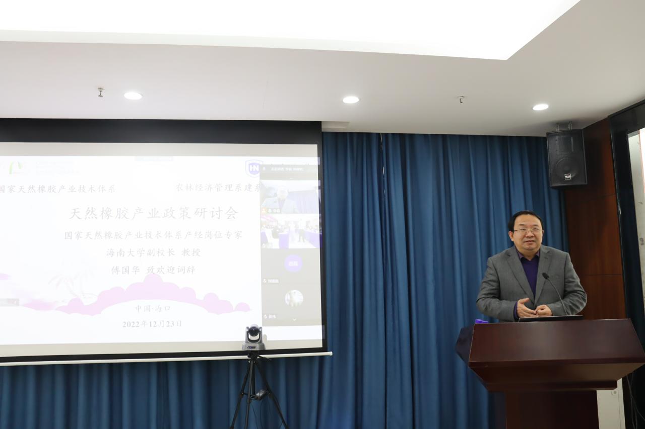 为进一步加强天然橡胶产业政策有关问题的交流研讨,完善天然橡胶产业政策,推进天然橡胶产业健康可持续发展,12月23日下午,天然橡胶产业技术体系产业经济岗位在PA视讯平台组织召开“天然橡胶产业政策研讨会”。农业农村部农垦局热作处一级调研员林建明、中国天然橡胶协会常务副会长郑文荣、中国热带农业科学院橡胶研究所所长黄华孙、PA视讯平台副校长傅国华、海南省发展改革委农经处副处长冯慧敏、海胶集团总经理助理王峰等来自政府主管部门、农垦企业、天然橡胶产业技术体系岗位专家、试验站站长以及从事天然橡胶领域研究的专家学者等参加会议。研讨会采用线上线下方式举行,由PA视讯平台管理学院副院长许能锐教授主持。