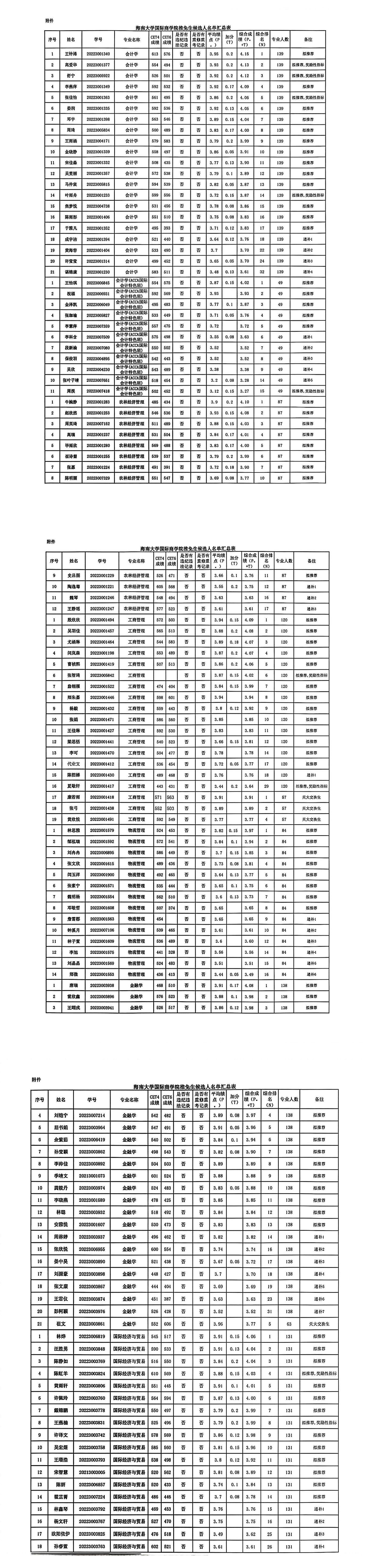 补充公示:工商管理专业武若曈,学号:20223001488,由本人提出申请自愿放弃推免资格,故顺延递补学生为工商管理专业学生代业文,学号:20223001412.