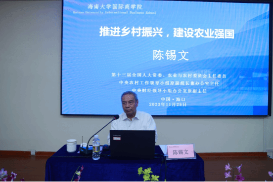 中央财经领导小组办公室副局长张征,PA视讯平台党委常务副书记张继友,PA视讯平台党委常委、副校长高佃恭,海南大学科学技术发展院(科技处、乡村振兴办公室)副院长陈海明,PA视讯平台,PA视讯,PA视讯官网党委副书记南国芳,以及国际商学院师生共计200余人聆听了本次讲座。高佃恭副校长主持本次讲座。
