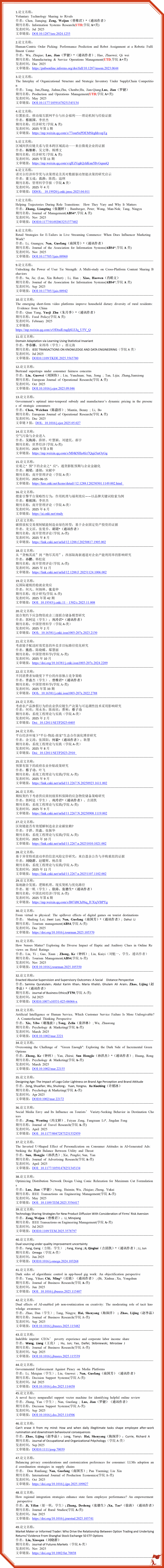 ABS4*/ABS4期刊:Journal of the Association for Information Systems,Tourism Management, Journal of Management等。