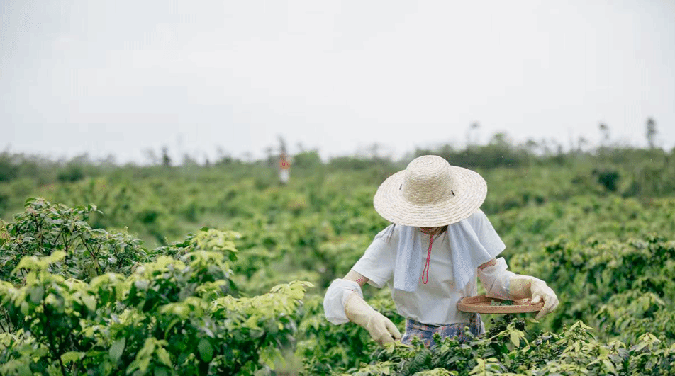 鹧鸪茶基地内,茶农在采茶。