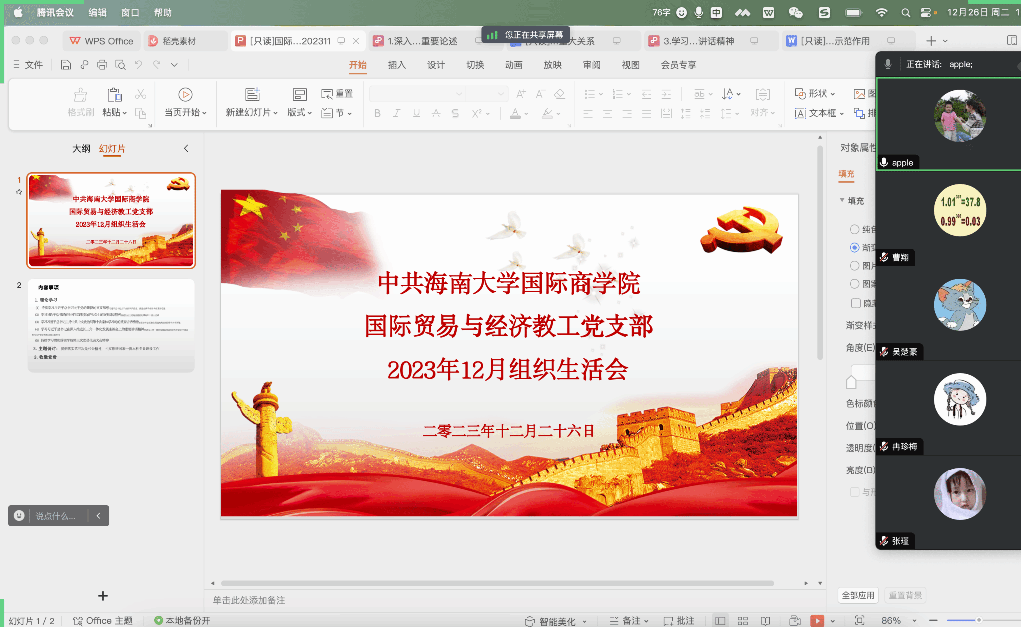 2023年12月,国际商学院各党支部分别召开了学习会,持续深入学习贯彻党的二十大精神。学院班子成员带头参加所在党支部组织生活会并列席所联系党支部组织生活会,就中国共产党PA视讯平台第三次党员代表大会等内容进行领学。
