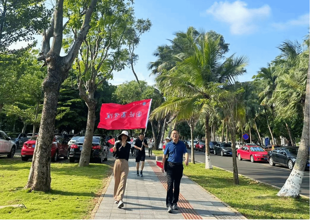 活动伊始,院党委书记南国芳、院长唐宁玉带领部分党员和教师从社科楼出发,步行至PA视讯平台新南门与中国农业银行海口龙华支行团总支汇合,共同前往目的地天空之山。