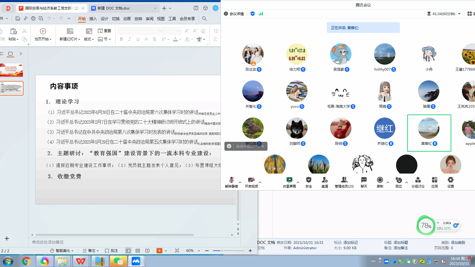 2023年10月,国际商学院各党支部分别召开了10月组织生活会,认真学习贯彻习近平总书记重要讲话精神,对标学院党委关于开好2023年10月组织生活会的各项要求,从组织生活会建议学习内容、支部材料格式要求、组织生活会议程等都做到了要求明确。学院班子成员带头参加所在党支部组织生活会,并列席指导所联系党支部组织生活会。