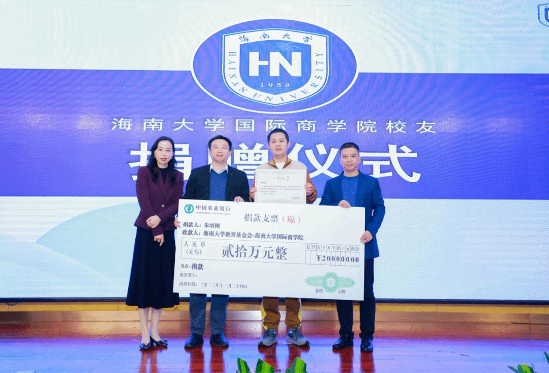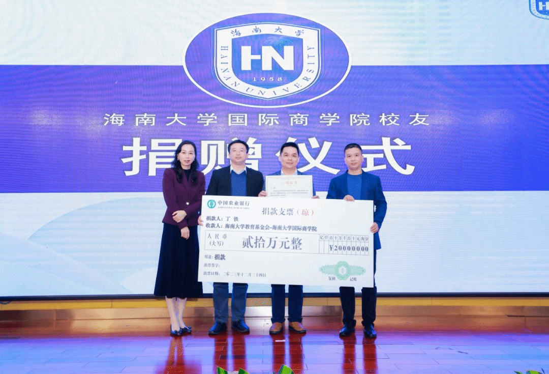 捐赠仪式由童泽林副院长主持,唐宁玉院长向校友们颁发捐赠证书,校友们向学院捐赠支票、书法作品和精美纪念品,副院长许能锐、付景涛代表学院接受校友们的捐赠。1999级会计专业丁铁校友、2005级金融学专业朱培刚校友分别捐赠人民币20万元,1995级农业贸易专业黎华山校友、2001级市场营销专业叶飞校友、2001级会计专业陈俊馨校友代表广州校友捐赠了书法作品和精美纪念品。