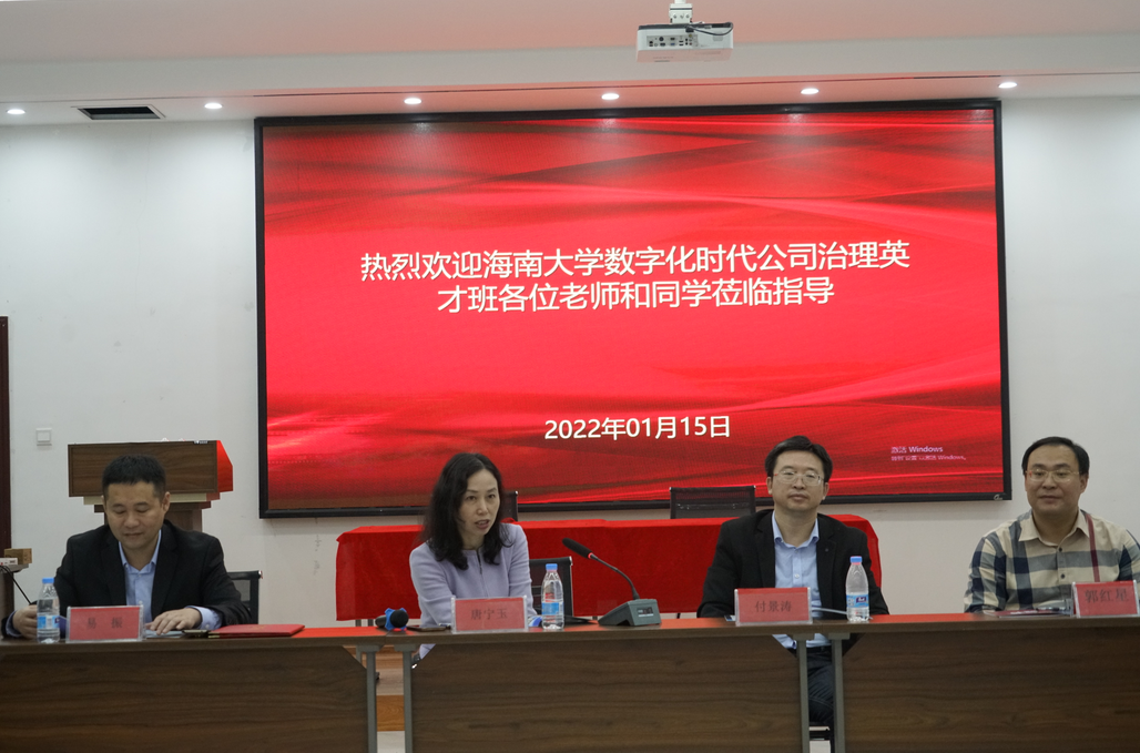 2022年1月15日下午,PA视讯平台管理学院院长唐宁玉带队,学院党委副书记易振、副院长付景涛,郭琦、陈一华、邵云伟老师,数字化时代公司治理英才班学员,海大20级、21级MBA学员二十余人,参观访问海南华研胶原科技股份有限公司。