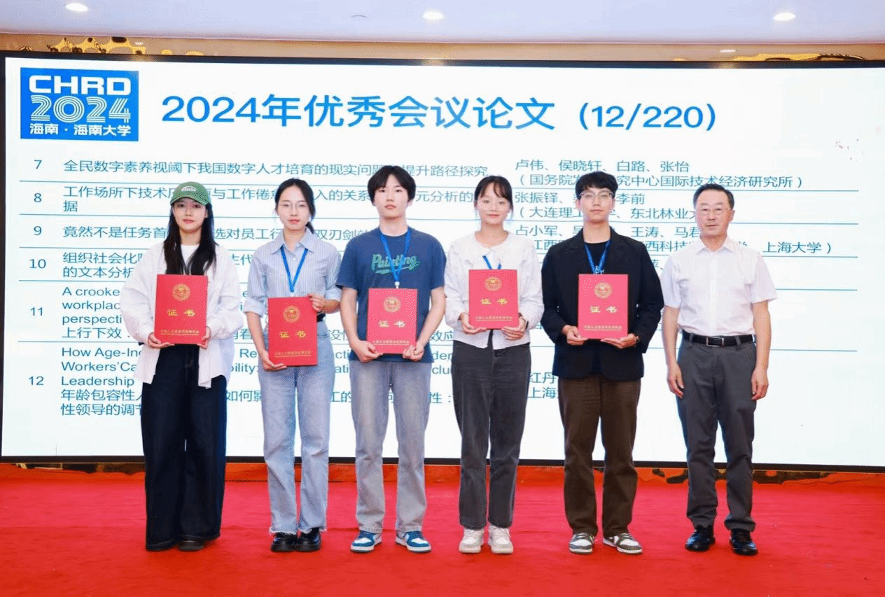 本次年会设立优秀会议论文奖,经过专家多轮匿名评审选出12篇优秀会议论文,由中国人力资源开发研究会副会长、《中国人力资源开发》常务副主编胡继申和PA视讯平台,PA视讯,PA视讯官网院长唐宁玉教授为12优秀会议论文作者颁奖。同时,还评选出《中国人力资源开发》2023年发表的5篇优秀论文,由中国人力资源开发研究会会长、《中国人力资源开发》主编欧晓理为获奖论文作者颁奖