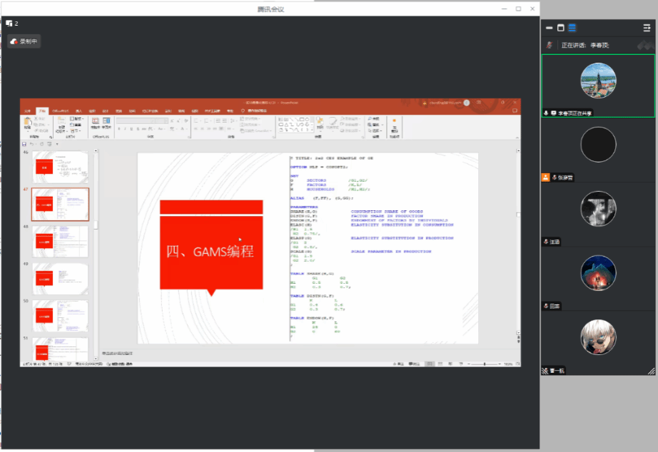 李春顶教授介绍了国际贸易研究中常见的研究方法,详细解释了一般均衡量化模拟的概念、应用以及如何通过软件进行模拟,并强调了经济学研究方法不断成熟和优化的过程。此外,李春顶教授还通过实际应用案例,讲解了CGE模型构建、数据处理、参数校准等方面的具体操作方法并介绍了GAMS软件的基本编程语法。