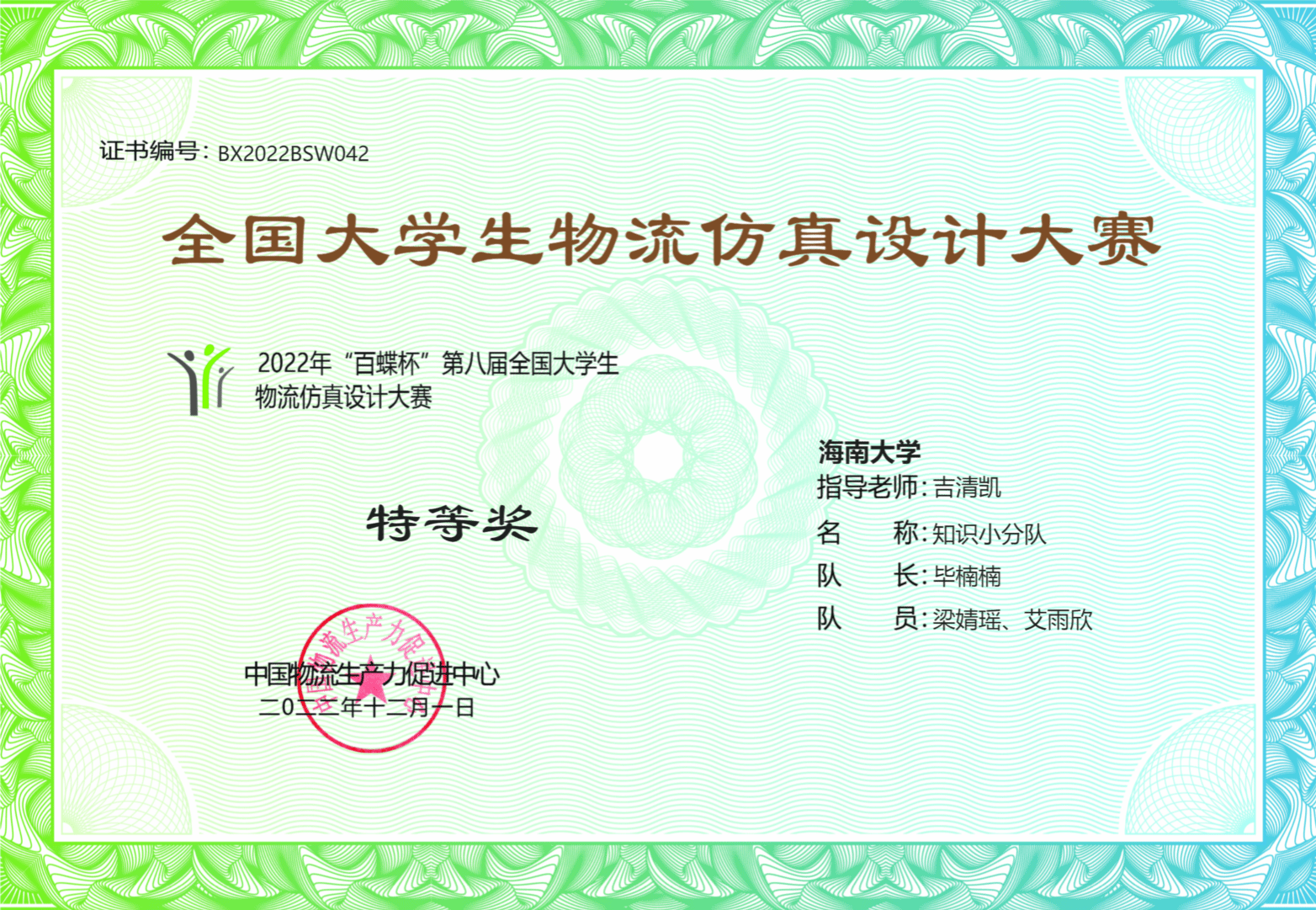 本专业拥有海南省精品在线开放课程《程序设计基础》、海南省线下一流课程《数据结构》、PA视讯平台“金课”课程《供应链管理》与《管理信息系统》,以及双语课程《运营管理》。